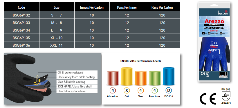 - Sandy foam nitrile second coat provides excellent grip in dry, wet and oily conditions